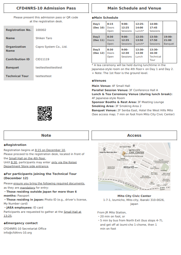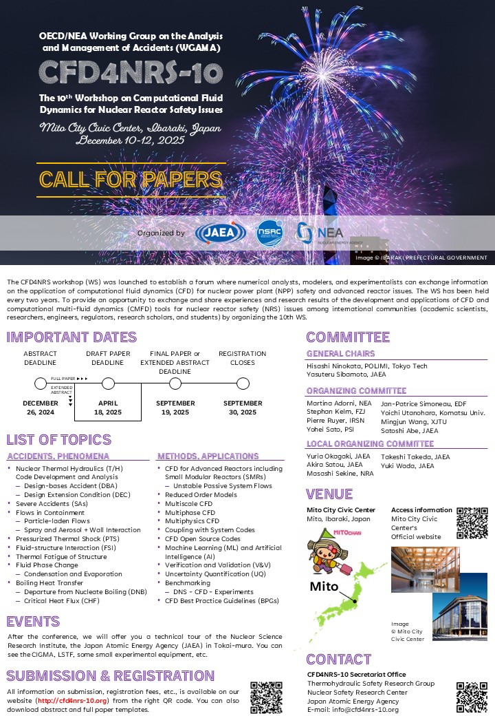 日本原子力研究開発機構 原子力安全・防災研究所 安全研究センター様が運営するCFD4NRS-10ワークショップにおいて、イベント管理システムQ-PASSをご導入いただいております。