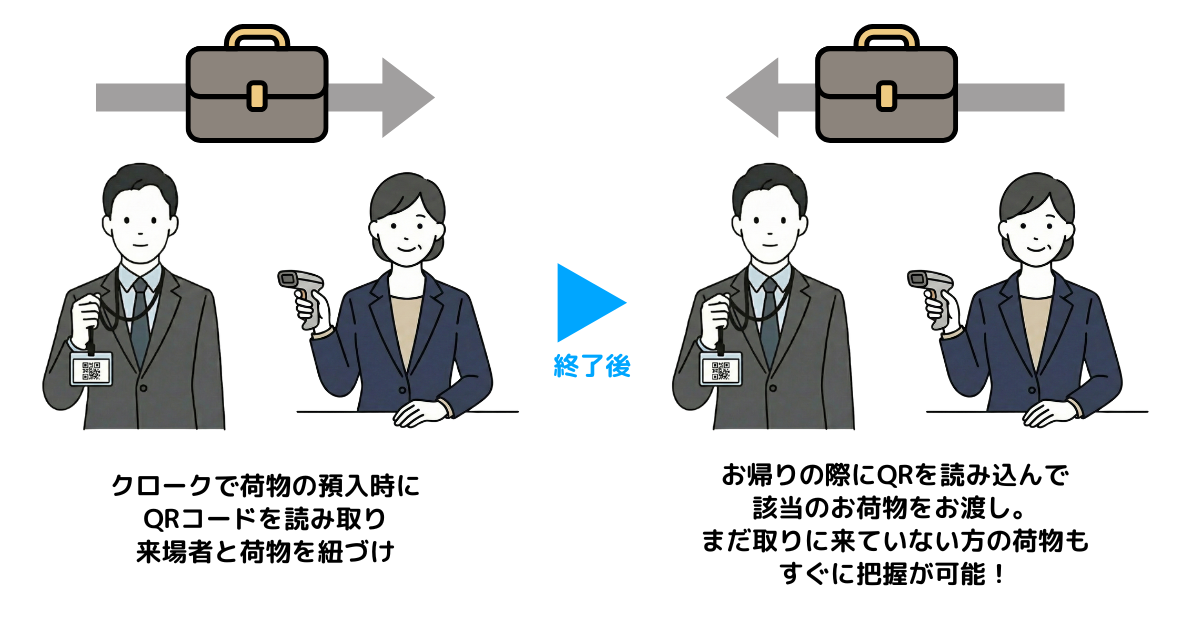 当日の会場で荷物を預かるクロークにて、荷物の取違防止や、どなたがまだ取りに来られていないかを確認したいというご要望もございました。