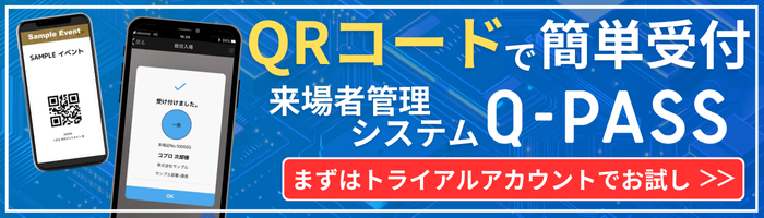 また、今回は展示会への出展だけでなく、会場全体の来場者管理にQ-PASSをご利用頂きました。申込フォームの作成から参加者情報のデータベース化、そして当日のQRコード受付と各ブースごとのQRコード読み取りなどを実施。総勢 約14,000名 というお客様の受付を滞りなくご案内することができました。